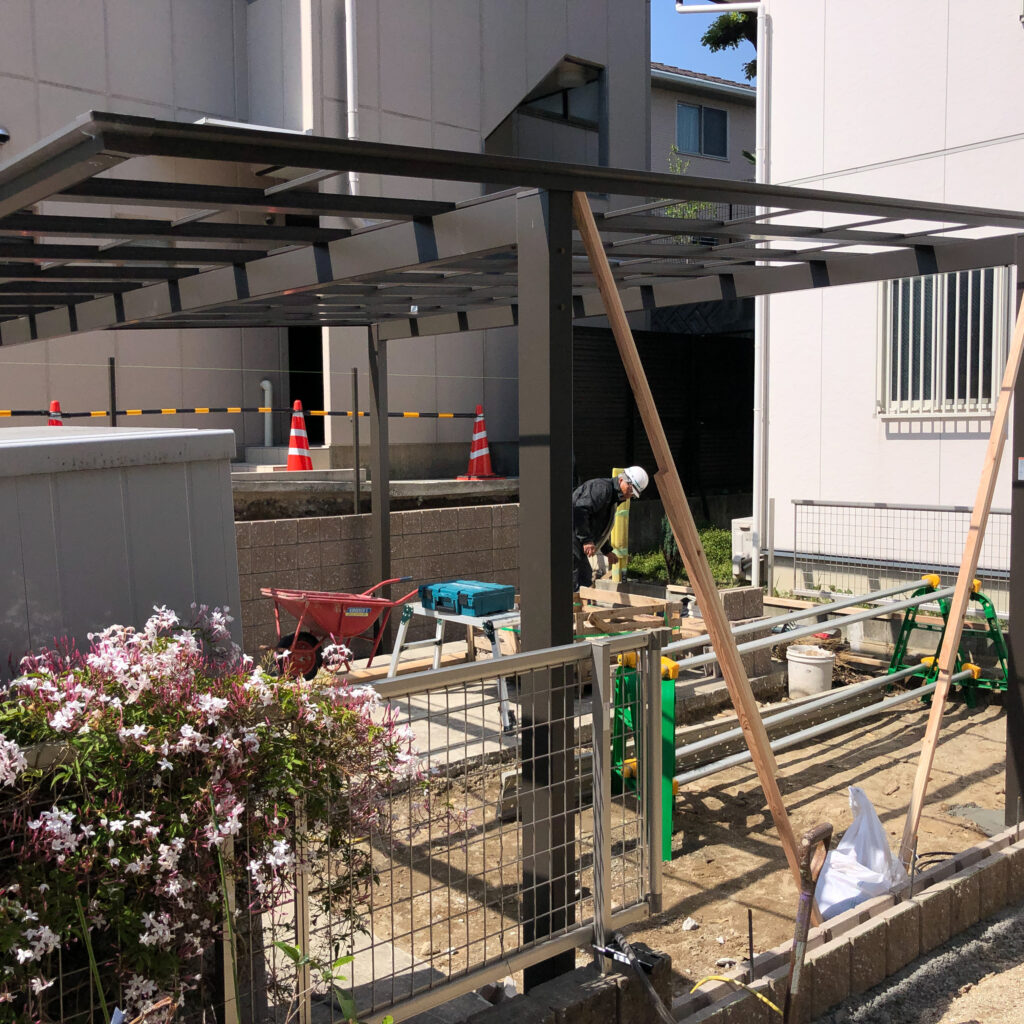屋根付きの車庫がほしいので、外構をリニューアルしたい