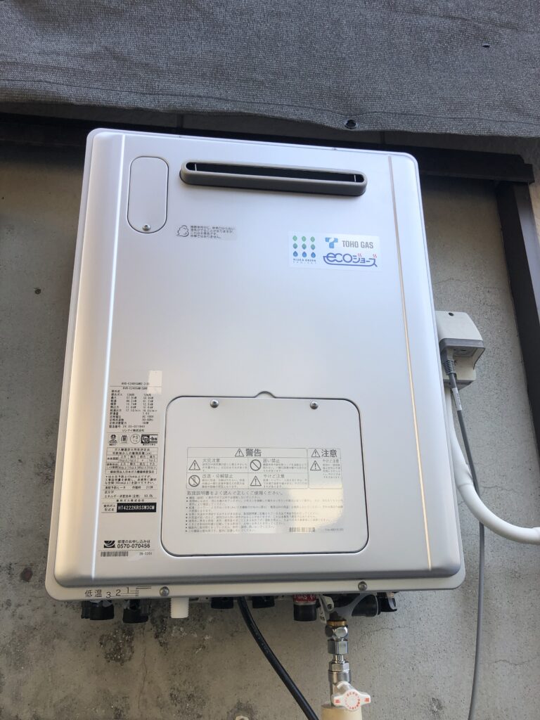 給湯器の経年劣化による不具合があり、交換対応を行いました。給湯器の交換では、ガス種の選定や本体の大きさ、機能による選択が必要となります。今回は基本的に現状と同等の機種を採用し、安心してご使用いただけるようになりました