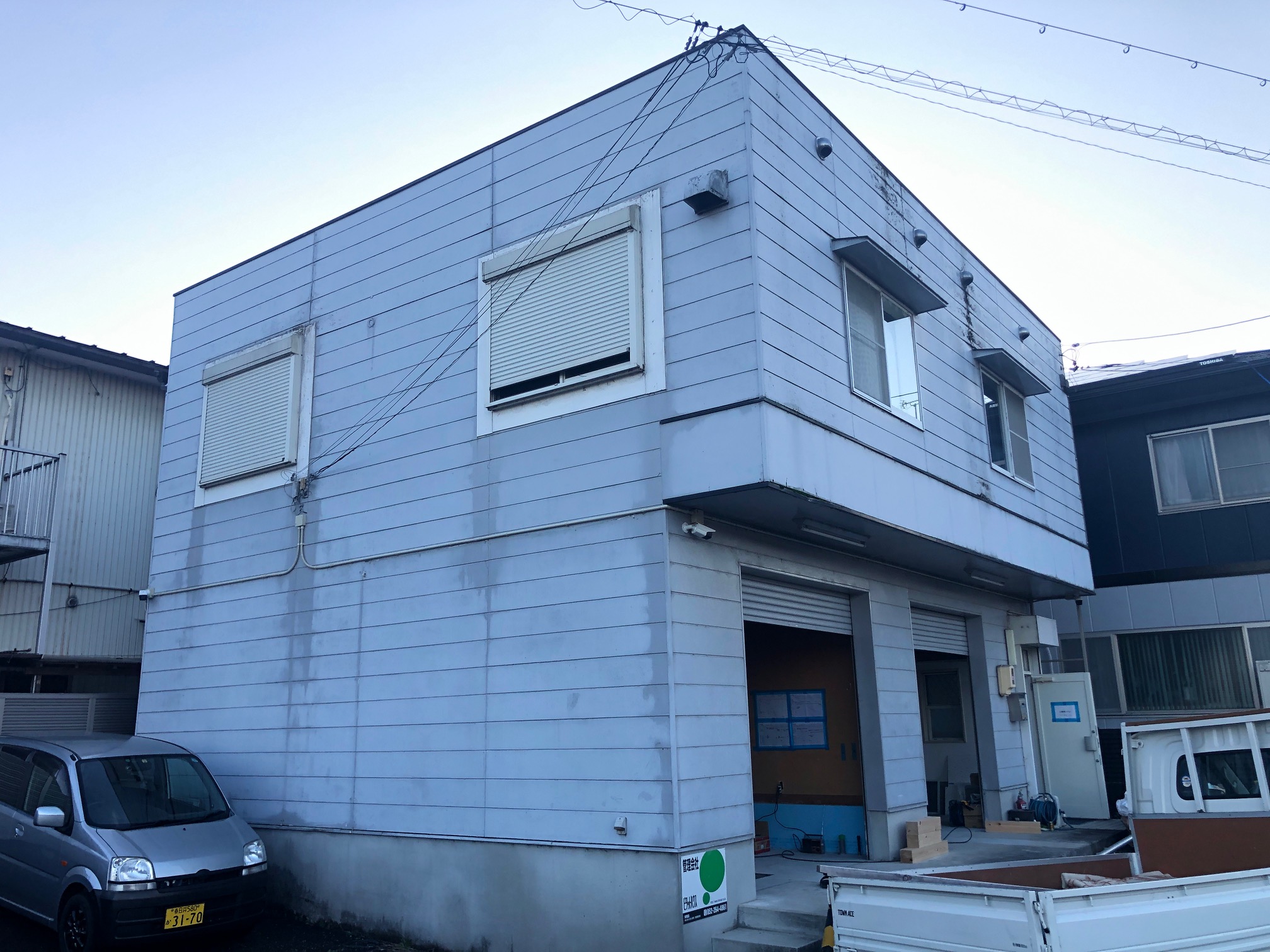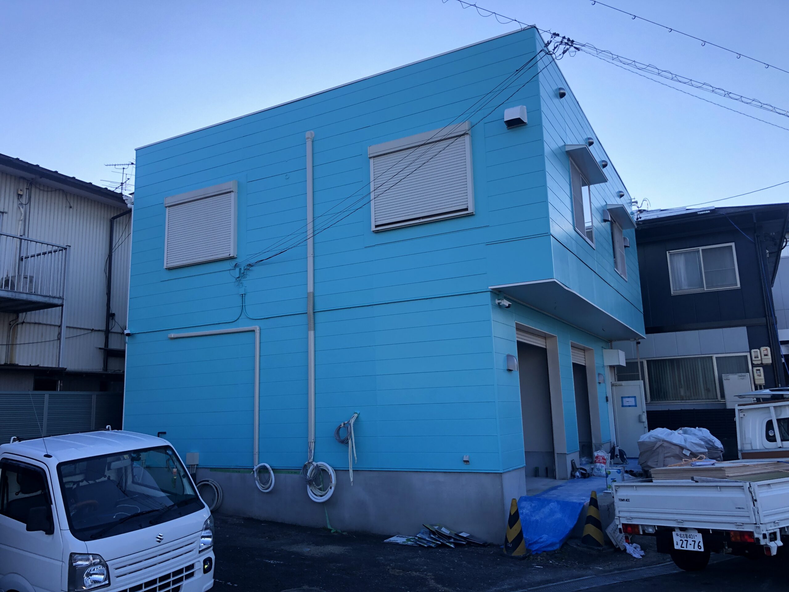 食品工場の新装工事に伴い、外壁の塗り替えを行いました。北側に位置し陽当たりが良くない立地であったため、建物全体が明るく見えるように明るめのブルーを採用。色褪せていた外壁が見違えるほど一新され、お客様にも大変ご満足いただきました