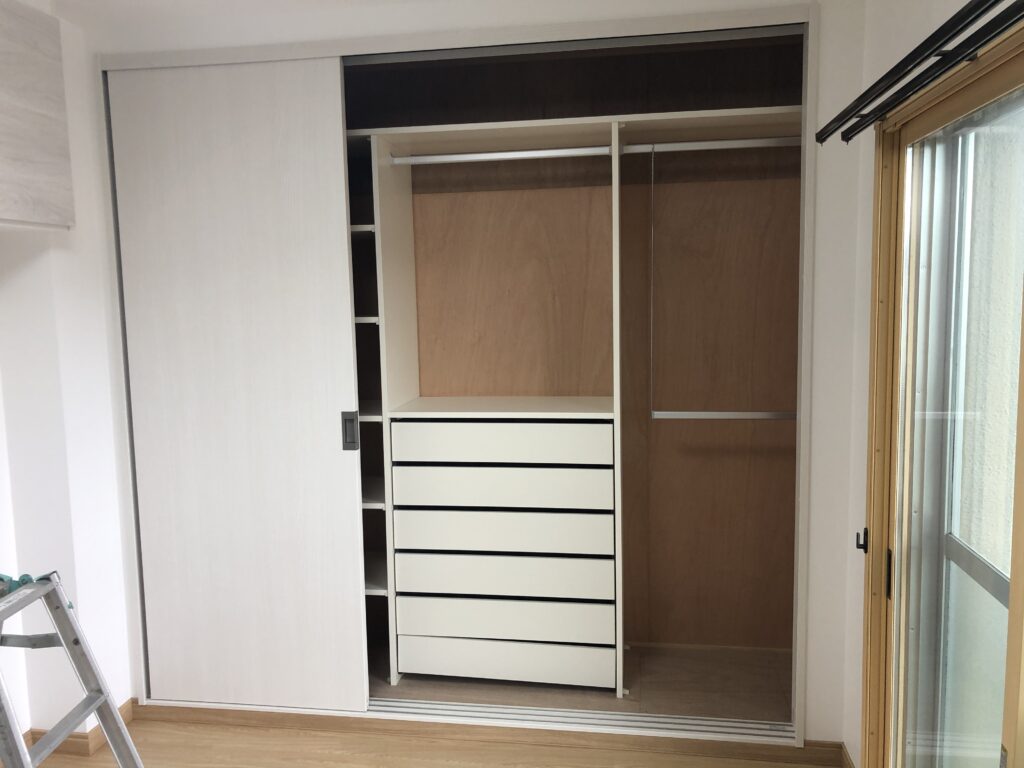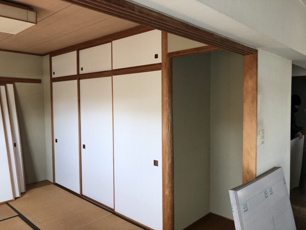 各部屋に造り付けの収納を設置し、あわせてクロスと床の貼替も実施。従来の収納は一般的な仕様でしたが、本棚やハンガーラックを組み込むことで、限られた空間を有効活用できるようになりました。