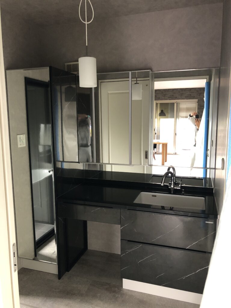 ユニットバスの交換にあわせ、洗面化粧台の更新と洗面脱衣室のリニューアルを行いました